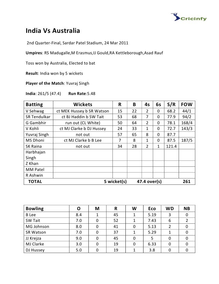 Australia Vs India Quarter Final 2011 / Probable teams for world cup final 2011 : Posted by admin Thursday, January 7, 2021