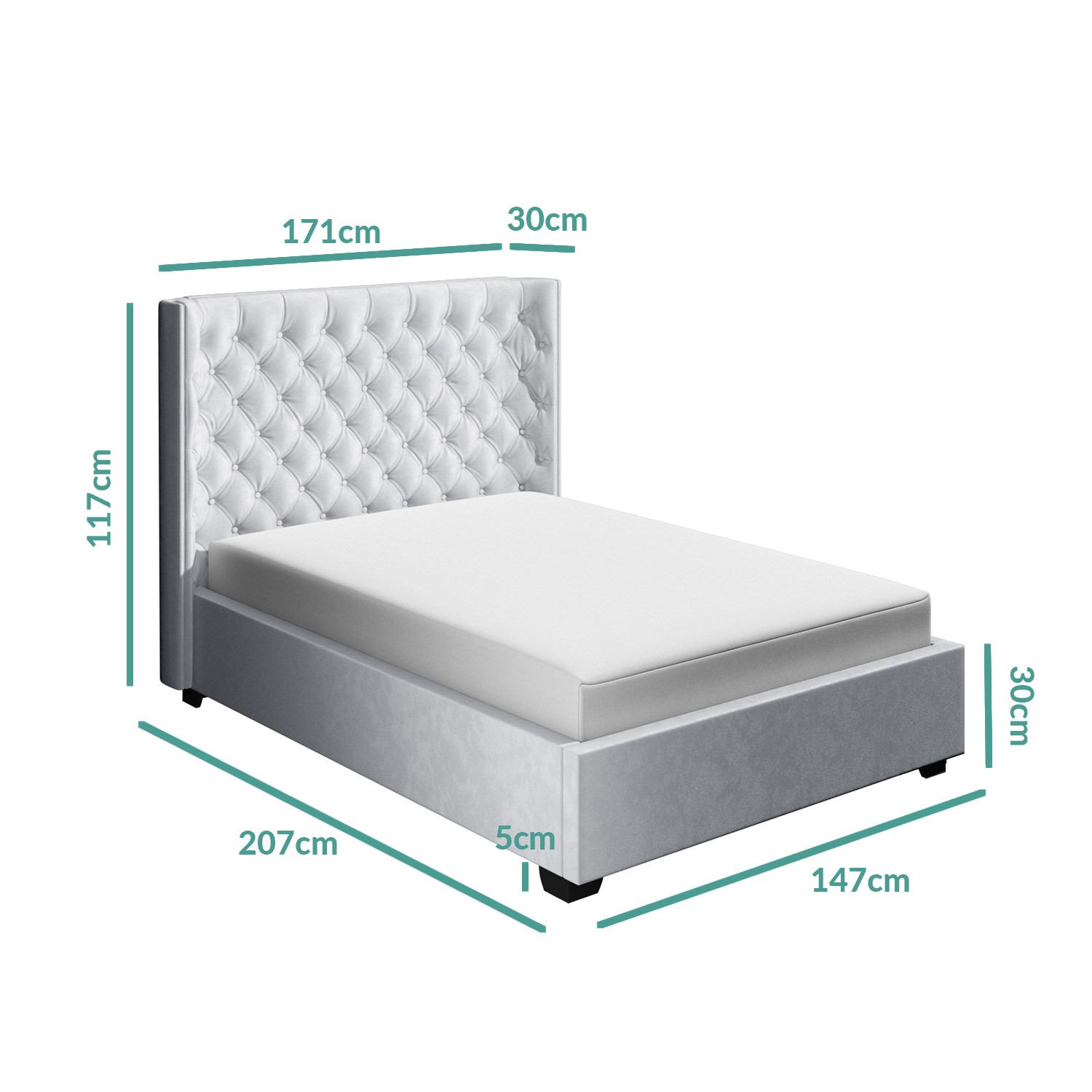 Light Grey Headboard Double